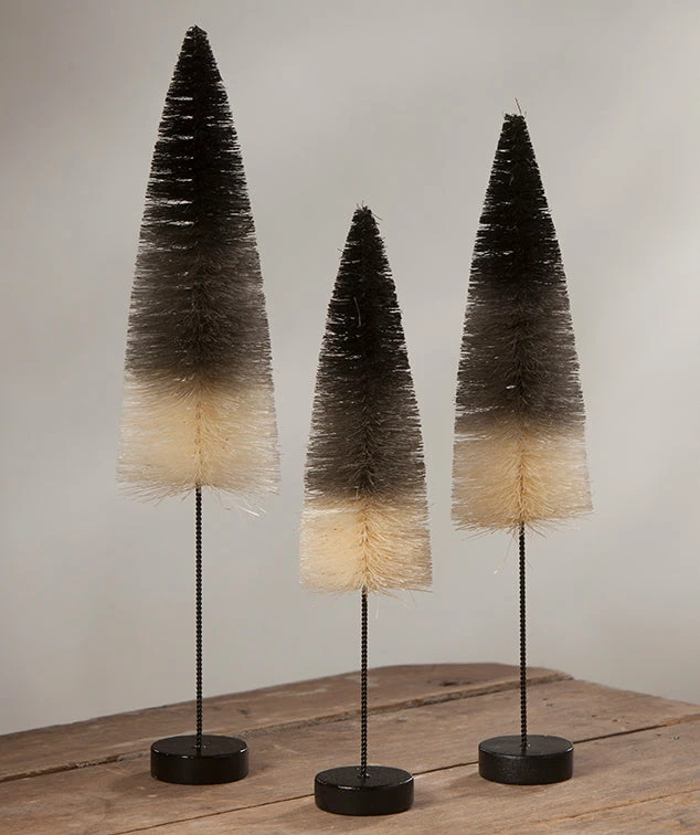 Give your Halloween decorating a stylish look with these Black and White Ombre Bottle Brush Trees.