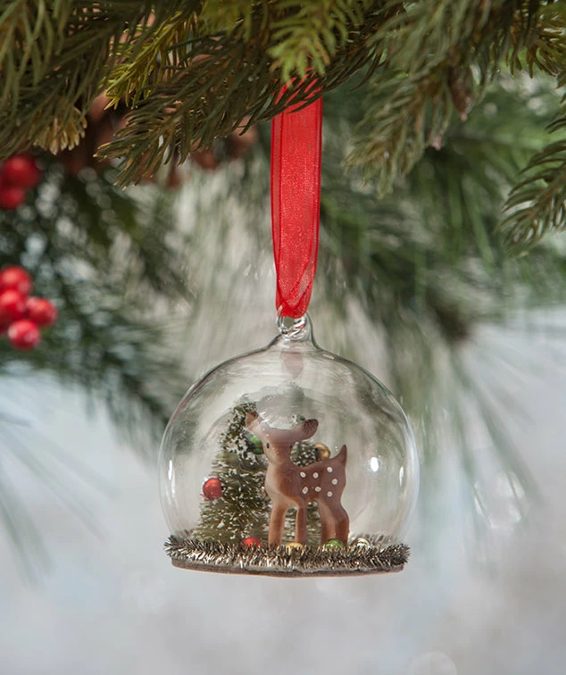 Add a traditional touch to your Christmas tree with this darling little Christmas Deer in Glass Globe Ornament.