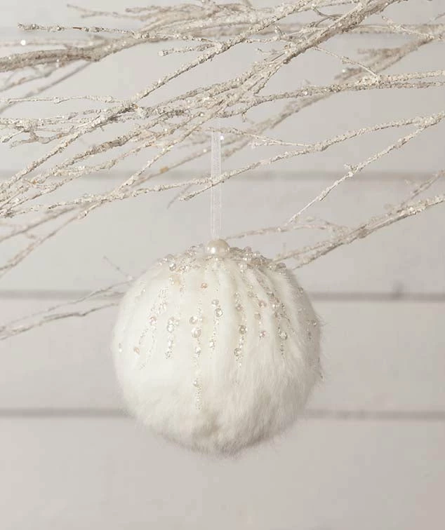 Create a cozy and enchanting atmosphere with this Encrusted Fur Snowball Ornament.