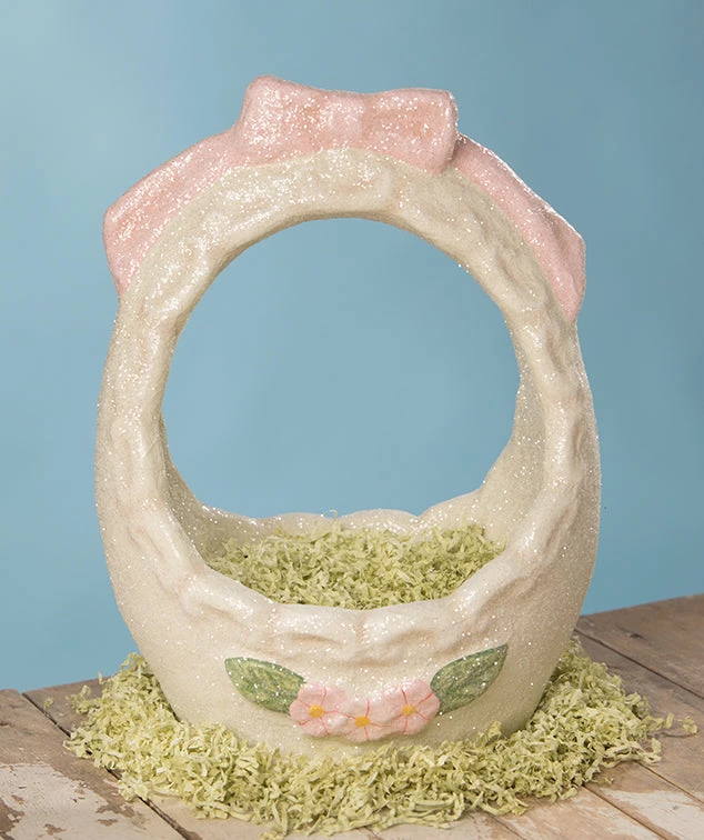 Add feminine charm to your Easter decor with this vintage-inspired paper mache Easter basket reminiscent of sugar eggs.
