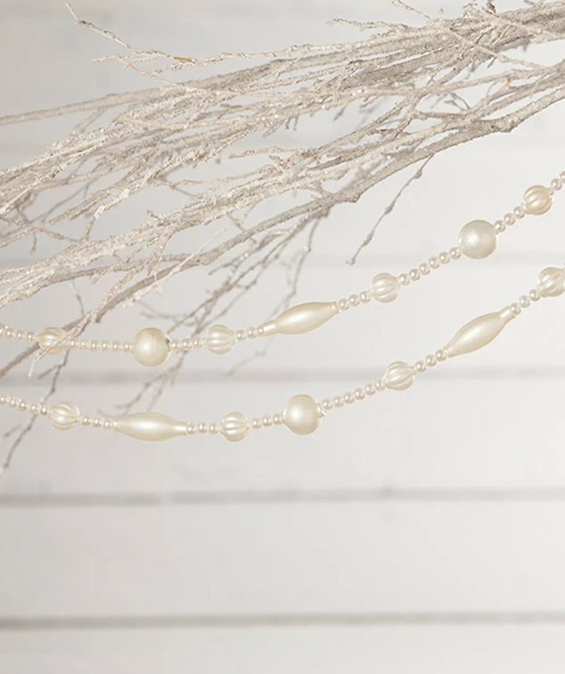 Dream up a winter wonderland with this pearl white bead garland.