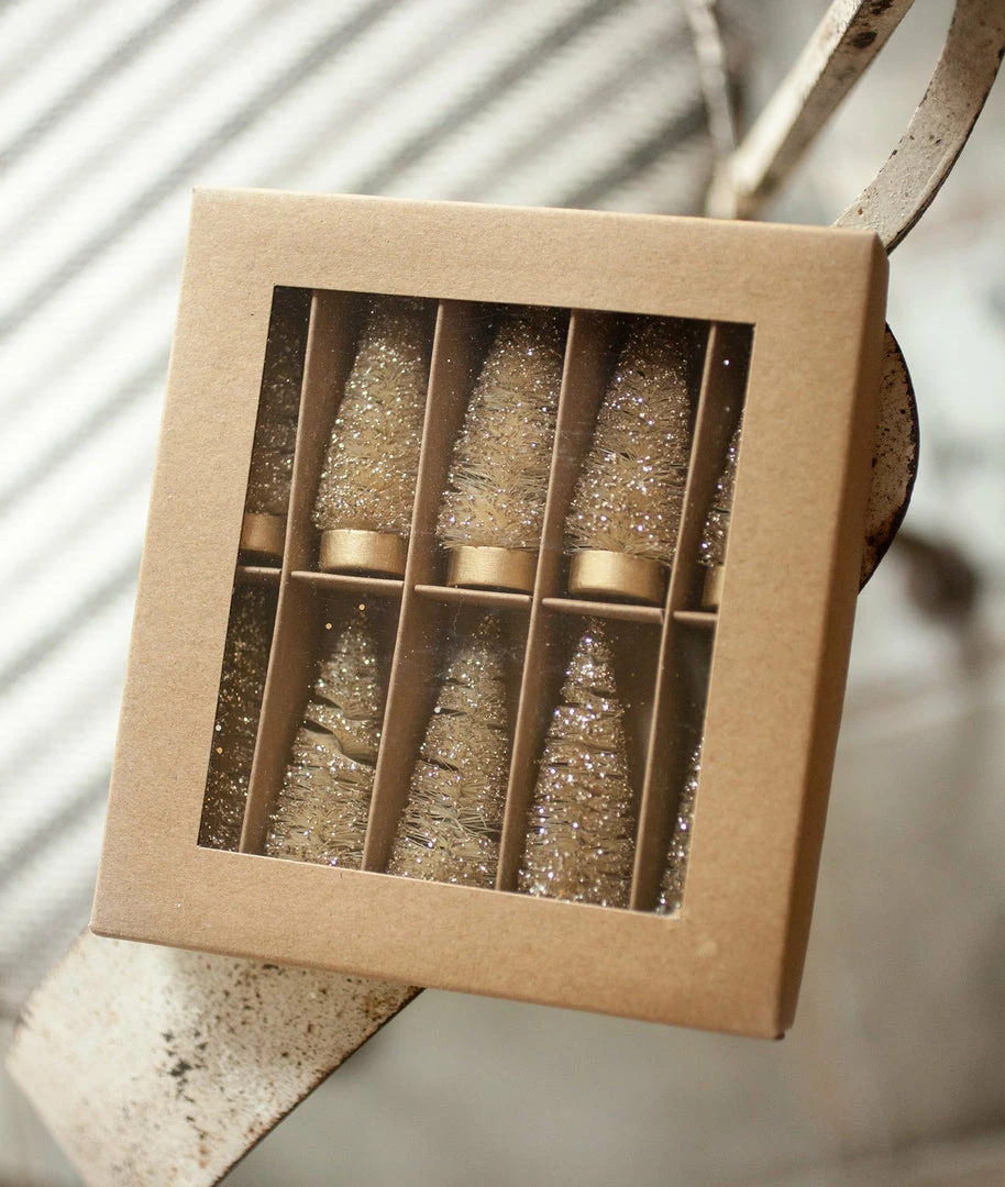 - Set of 10 mini bottle brush trees