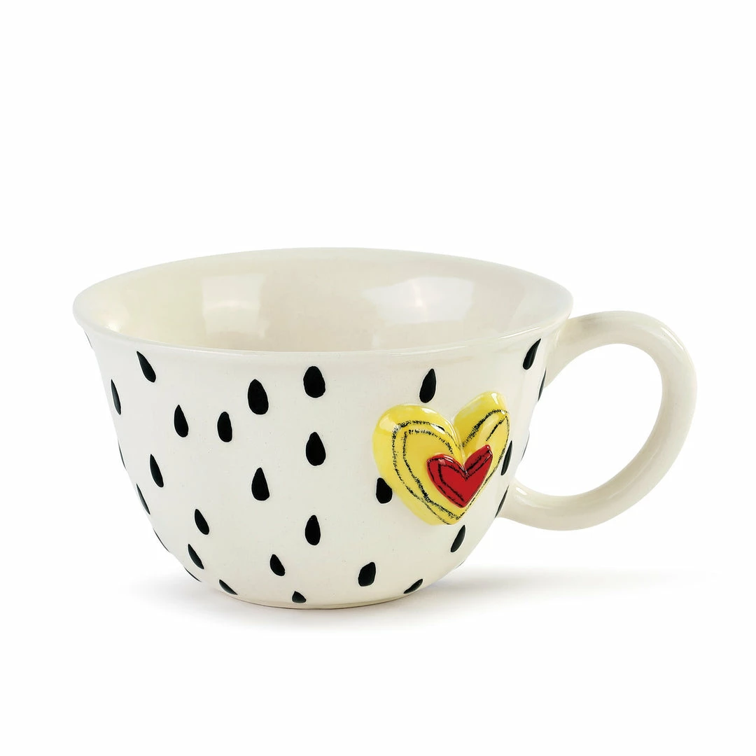 Bring a bold and artful touch to your morning or afternoon coffee or tea with this artist designed Raindrops and Hearts Tea Cup.