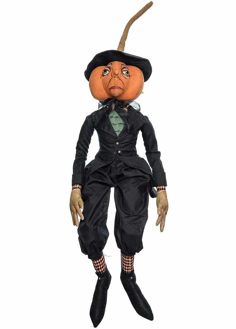 Greet the ghouls and goblins with this unique Halloween pumpkin head man.