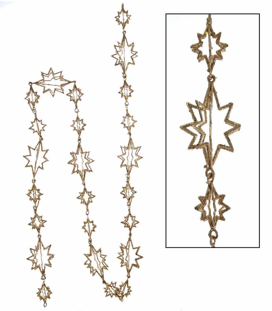 Dress up you Mantel, windows or Christmas tree with this sparkling gold glitter star garland.