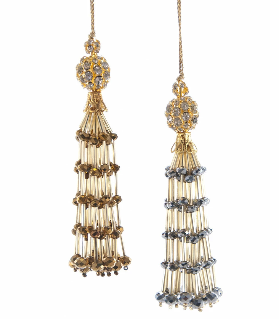 - Set of two assorted Faceted Bead Tassel Ornaments.