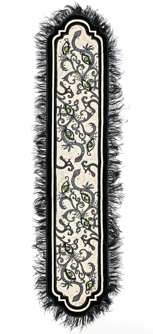 Create an unforgettable Halloween party scene with this wickedly detailed I’m Watching You Table Runner by the designers at Katherine’s Collection.