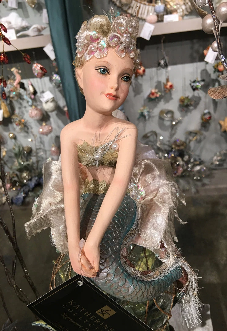 Sun, sand, and surf awaits you. Take time to feel the breeze and dream with this beautiful Katherine’s Collection coastal mermaid.
