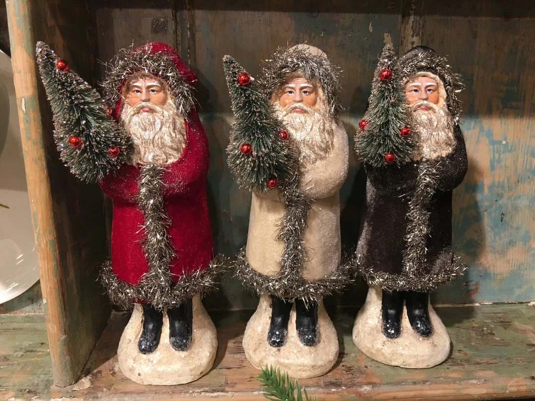 Add vintage charm to your Christmas decorating with these vintage-inspired Flocked Belsnickel in your choice of red, cream or black.