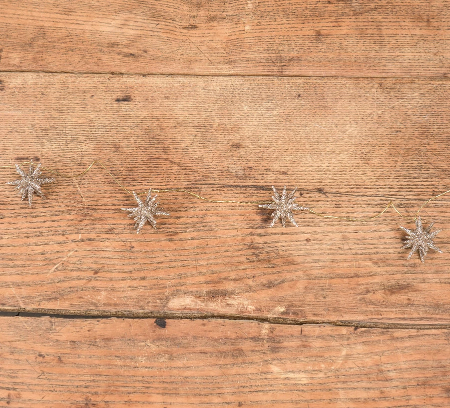 Give your holiday decorating a celestial feel with this champagne glittered Moravian Star Garland.