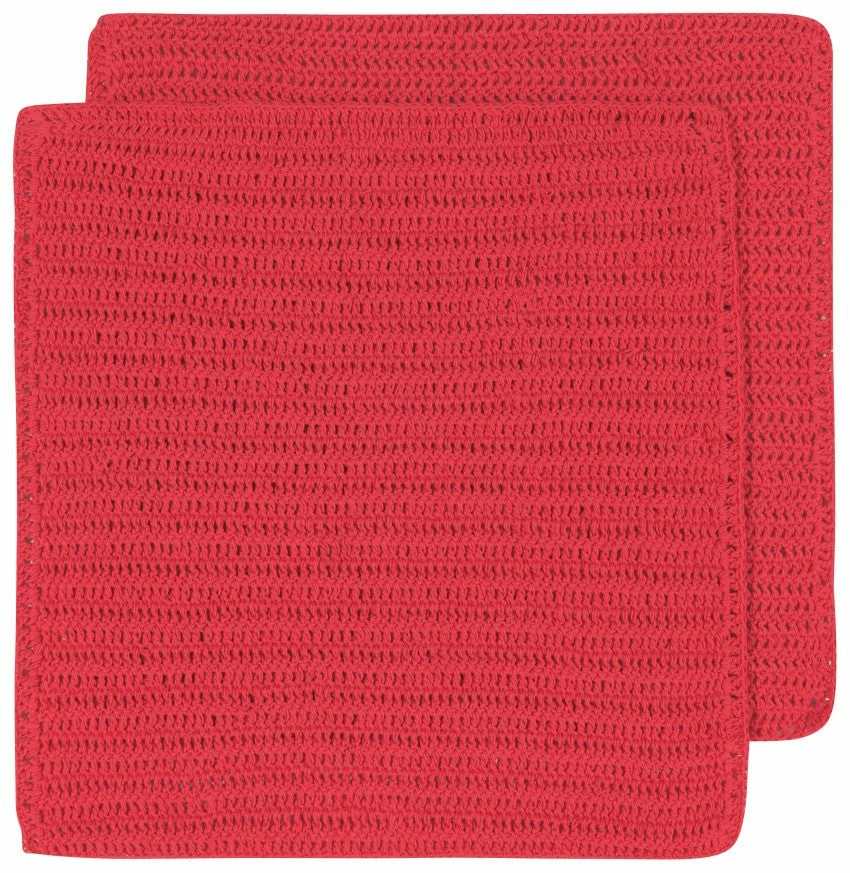 Freshen up your kitchen with these handmade red cotton crocheted dishcloths.
