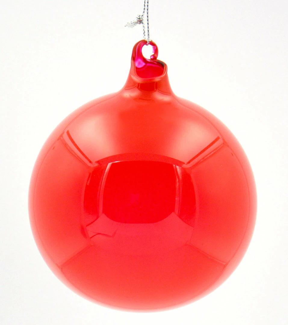 Personalize your holiday decor with these hand-blown Candy Apple Bubblegum Glass Ball Ornaments by designer Jim Marvin.