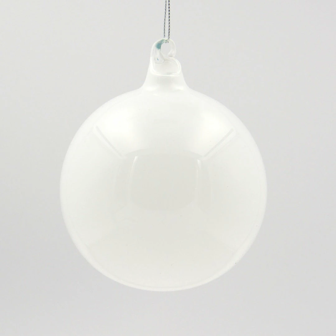 Personalize your holiday decor with these hand-blown Snow White Bubblegum Glass Ball Ornaments by designer Jim Marvin.